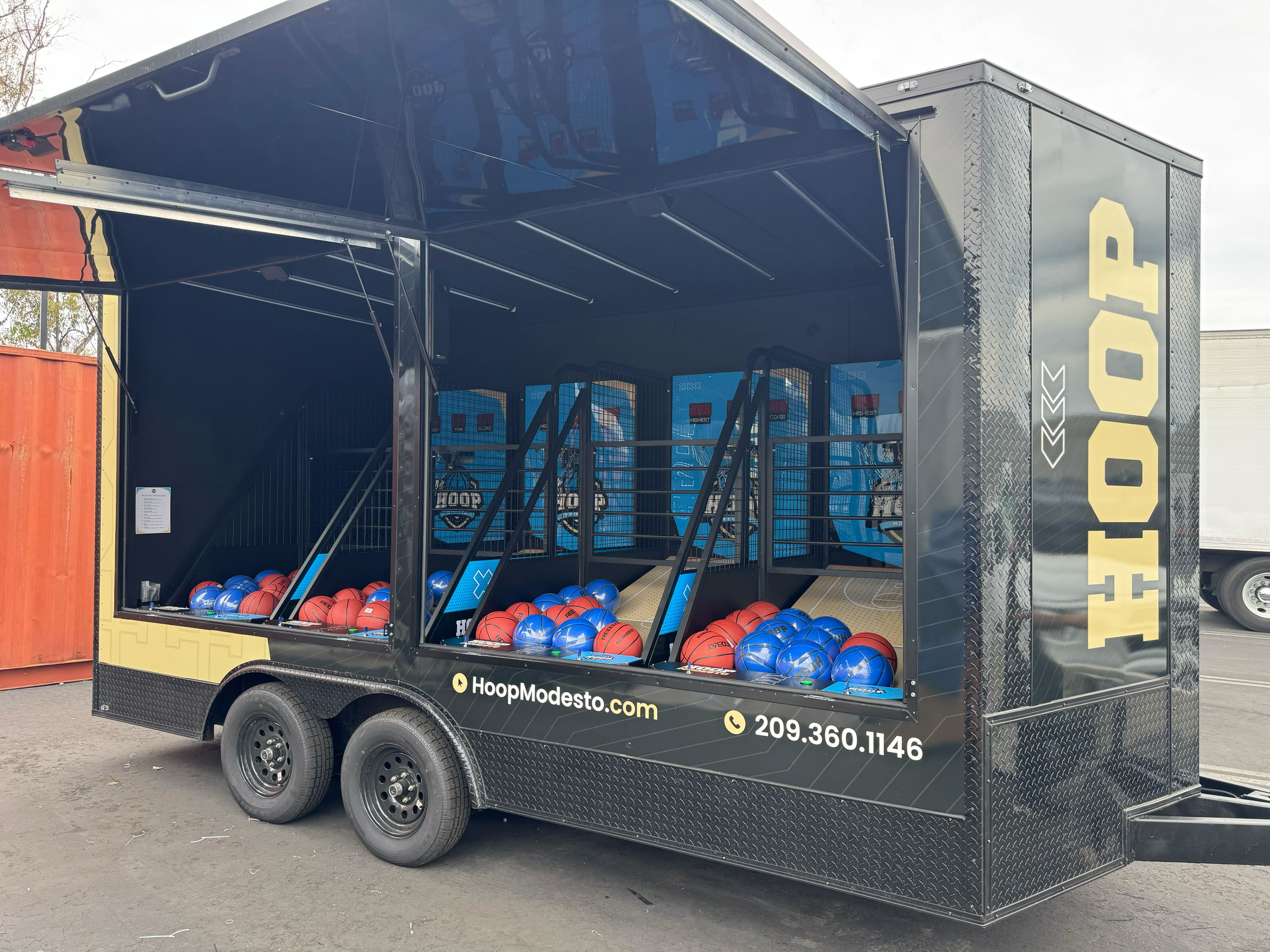 We put 4 arcade basketball machines in a trailer.